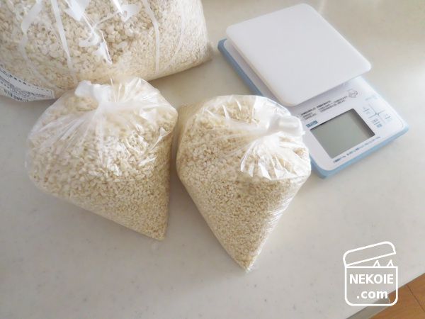 大量に注文した麹は「500g」や「200g」単位で小分けして、今後の作業に備えます。