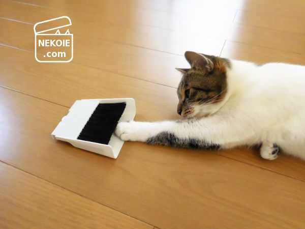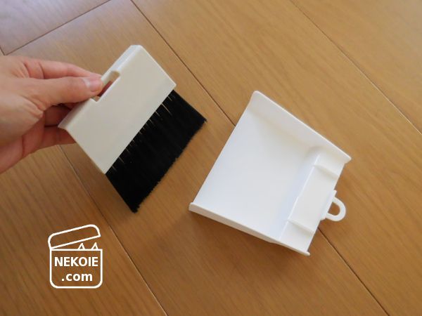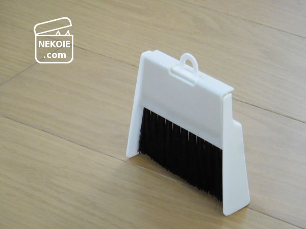 日に一度は掃除機をかけるし、ほうきでも掃きます。でもそれらの道具は少し大きめ。砂の飛び散りを防ぐために設置した板やトイレ本体を移動させないと使いにくく感じていました。