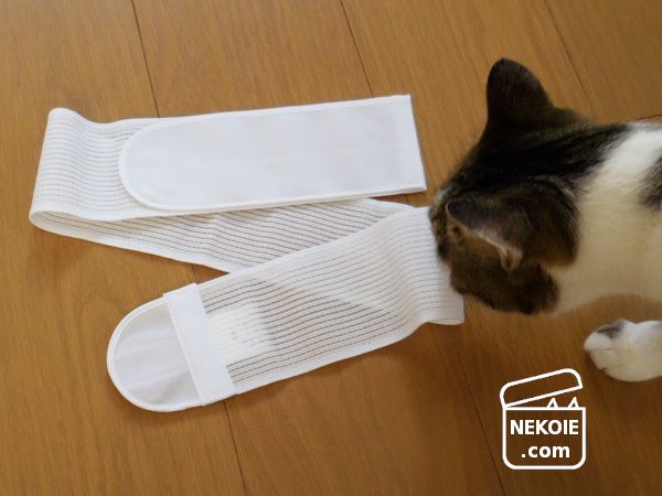 この後、お決まりの猫パンチがさく裂し、伊達締めは部屋のすみっこまですべっていきました。