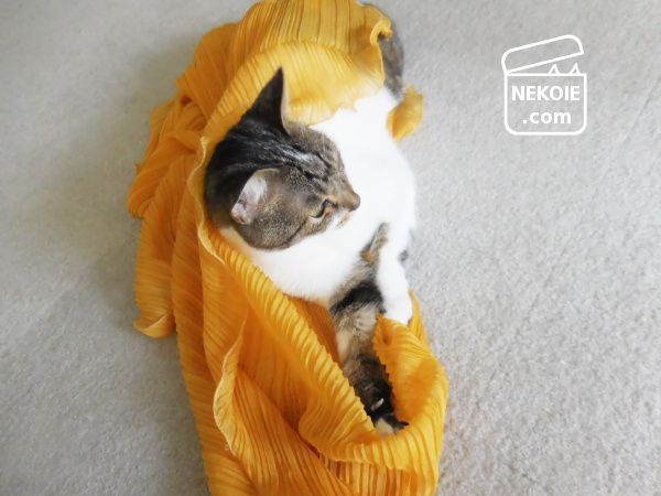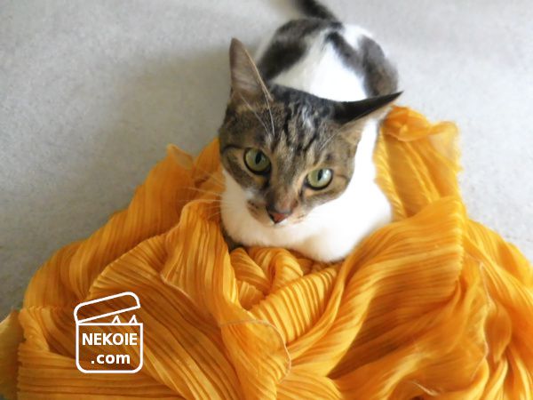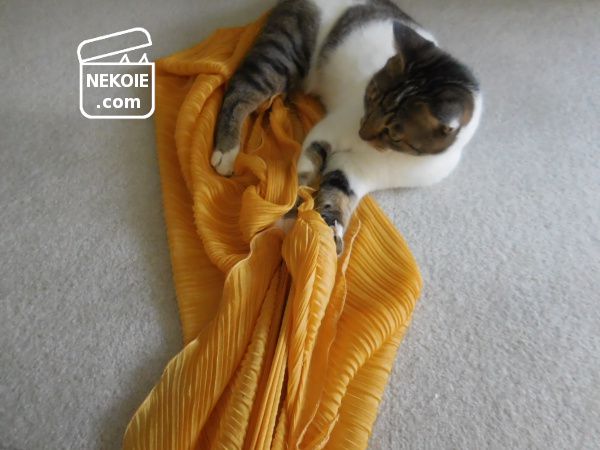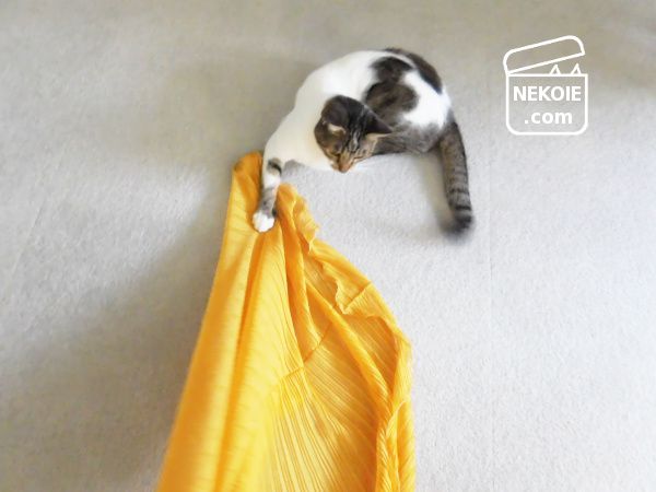 猫のお気に入りの布。できれば洗濯をしたい私と、そうはさせない強い意志を持つ猫との攻防。