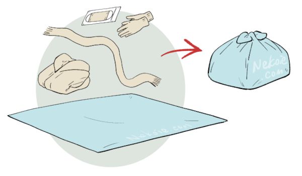 脱いだコート、マフラー、手袋、マスクなどをささっと風呂敷に包んでおけば、落としにくいし、忘れにくい。冬物はかさばるのでこの方法を重宝しました。