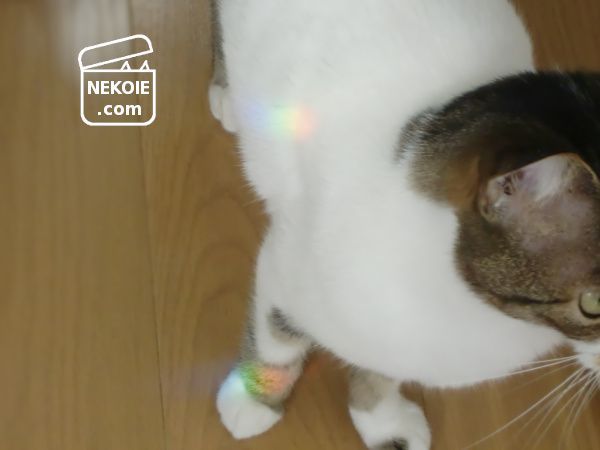 この日、その光を受けた猫も虹色に。なんだかとても幻想的でした。