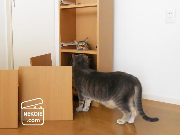 今回、色々気をつけながら(換気しつつ、ネジを誤飲されないように…など)猫スペースで作業しました。
