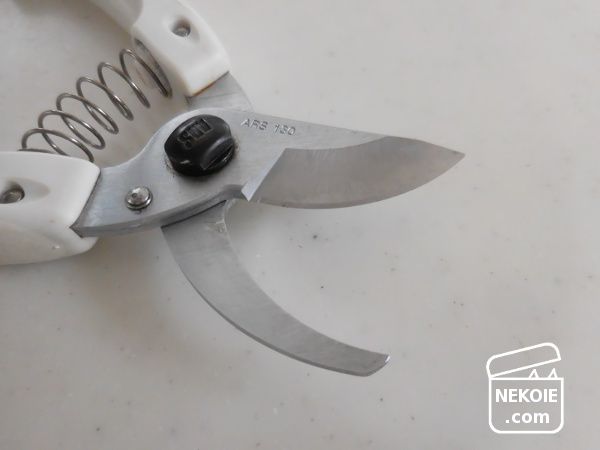 この流れでは少し異色ですが、毎朝キッチンで使う花ばさみ。仏花のお手入れを始めたのを機に出番がぐんと増えた道具で、収納場所もキッチンに移していました。
