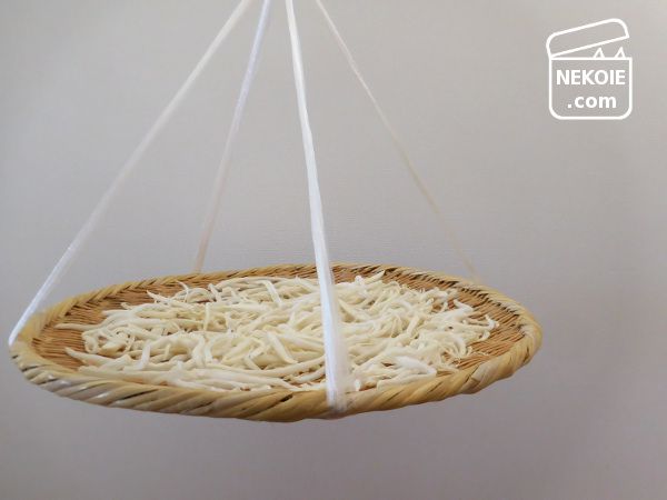 ザルをのせる紐は3mと前述していますが、長めにしておけばある程度は「高さ」の調節も可能。
