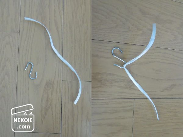 S字フックに30cmくらいの紐を結びます。