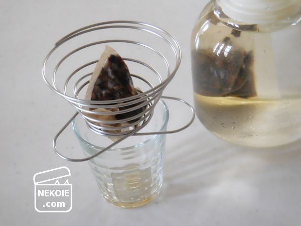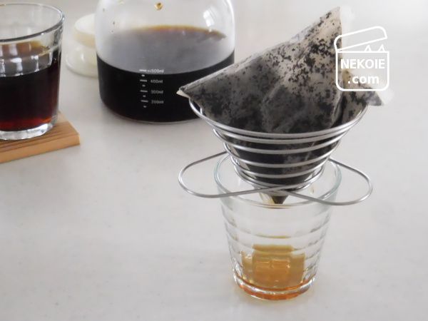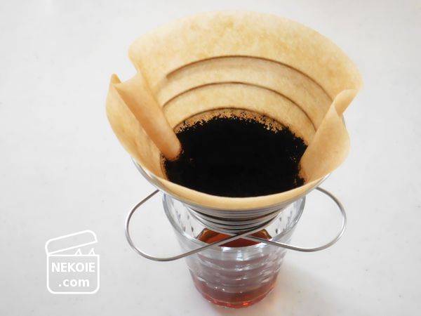 コーヒーだけでなく冷茶のときも同じく。一般的なサイズの紅茶のティーバッグなどものせることができたため、ここで水切りをすませてから次の工程へと進むようになりました。