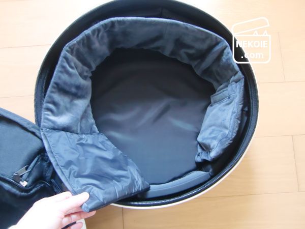 とくに愛用しているスリーピーポッドのキャリーバッグは、中にふわふわ起毛素材のインナーカバーがついており、それをファスナーで着脱することができます。