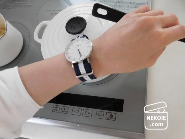 実は、最初にいいなと思ったのはClassic Sheffieldだったのですが、私が求める条件には厳しい本革でした。また金属製のストラップ(現在のDWにはありません)も装着時間が長いと負担に感じた過去があったので、日常使いには向かないかなと。出勤先でスマートにつけるなら本革や金属製も良いと思いますが、在宅でデスクワークや家事をする私には荷が重かったのです。
