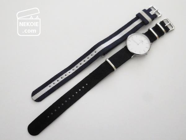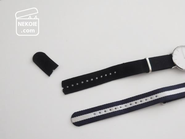 腕時計自体はとても気に入っているのですが、NATO素材の「ホワイト」を含むベルトを選んだため汚れが目立ちやすいのが玉に瑕。たびたび洗いながらも悩ましいなと思っていた時、非公式の替えベルトを見つけました。