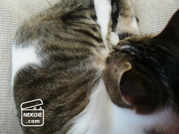今日も暑い、と思っていたら弟猫は狭い場所にもぐりこんで暖をとって(?)いました。