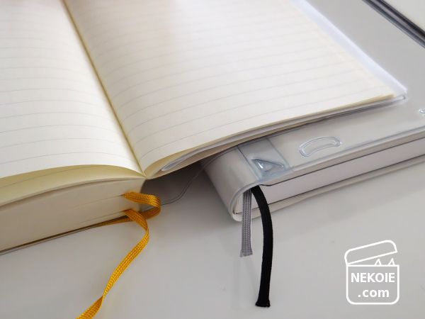 厚みがある分、開いたときに背表紙の裏に空間ができてしまい、その段差を解消するために他のノートなどを使う必要がありました。