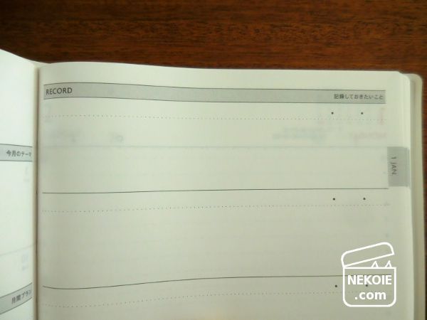年の初めに見開きで一箇所、毎月初めにもそれぞれ、プランニングページがあります。