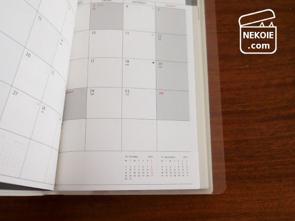 2017年10月から、2018年12月までのマンスリーページもあります。