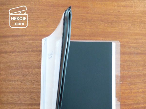 「B6」の下敷きは、「B6変型」のEDiTには若干大きめですが、閉じるとはさんでいるのを忘れてしまうくらいのサイズ感です。