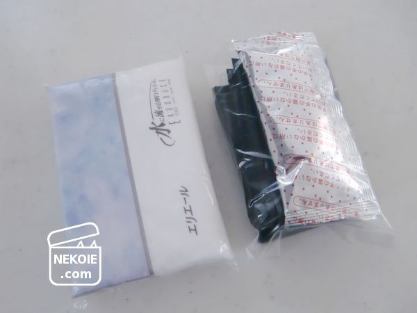 小分けした一回分(汚物袋+凝固剤)は、ポケットティッシュより若干小さいサイズ。