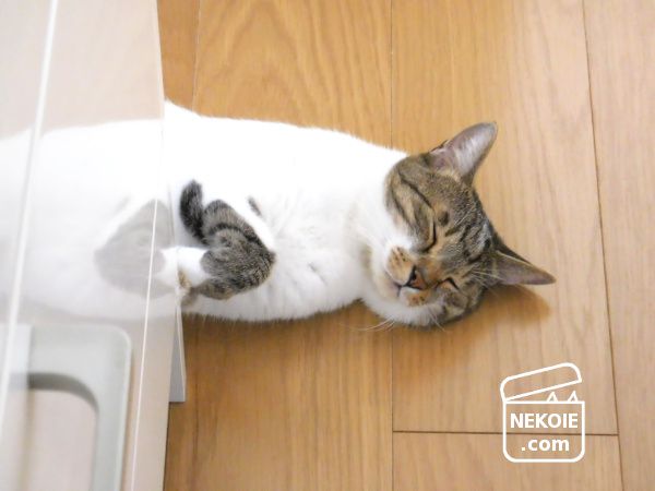 とはいえこちらから手を伸ばすと、すかさず撫でられようと首を伸ばす弟猫でした。