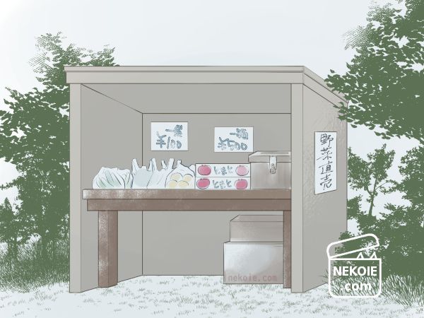 沿道で販売しているから、沿道販売。正確には沿道というより、農家さんがご自宅の庭先や門前などに設置している無人販売所のことをそう呼んでいます。