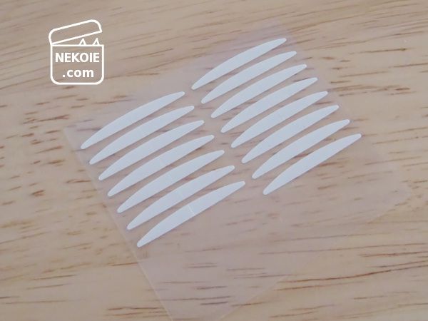 二重まぶたをつくりたい場所に貼って使う、専用の両面テープです。
