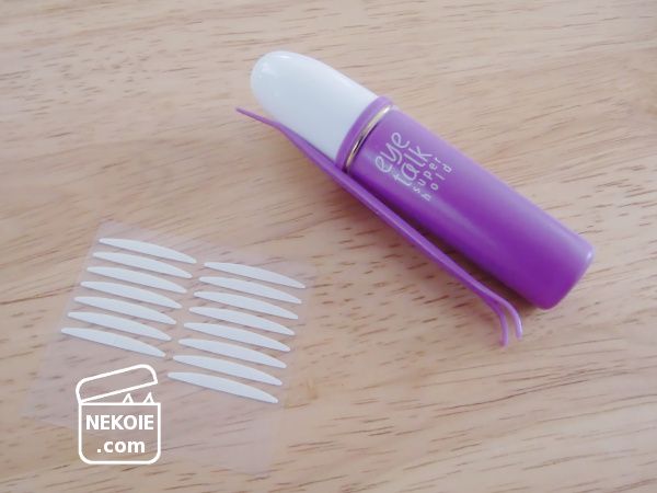 大人向け(?)と思われるものもあったのですが、最寄りの薬局で一番お安いシリーズの中から汗にも強いものを選びました。この商品自体の使い勝手や品質の確認というよりも、私が左右対称のまぶたをつくれるようにのりを塗れるかどうか? が最大の関門だったからです。