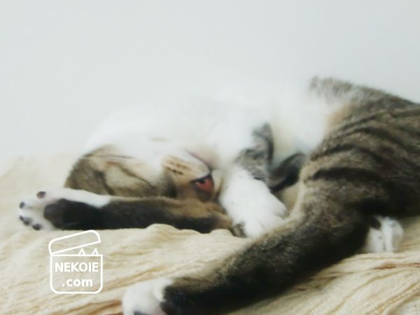 こちらは手ブレ……というより、シャッターを切る瞬間に伸びっとした弟猫。