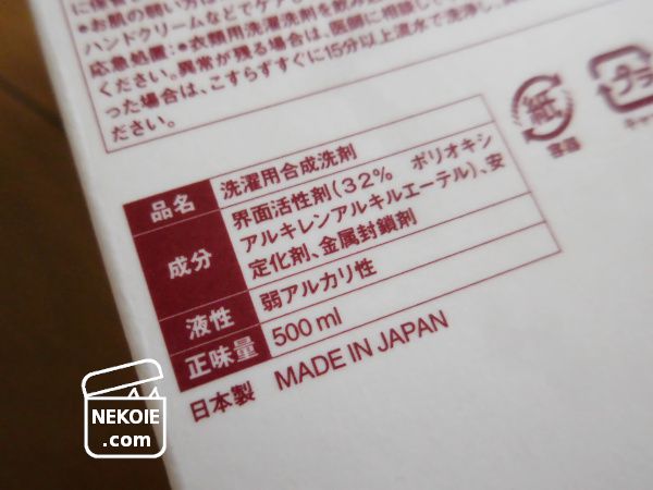 ただ完全に私の見落としだったのですが、無印良品の洗濯用洗剤(おしゃれ着用でないもの)は弱アルカリ性だったんです。