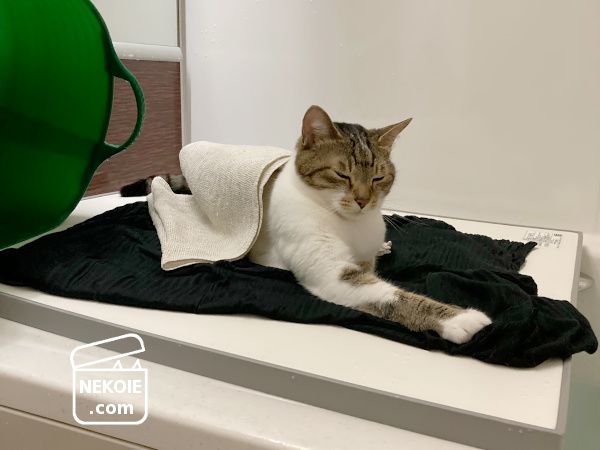 これは数分後に寝返りを打った弟猫が、倒れてくるタブトラッグスにびっくりする前に撮影しておいたものです。