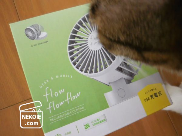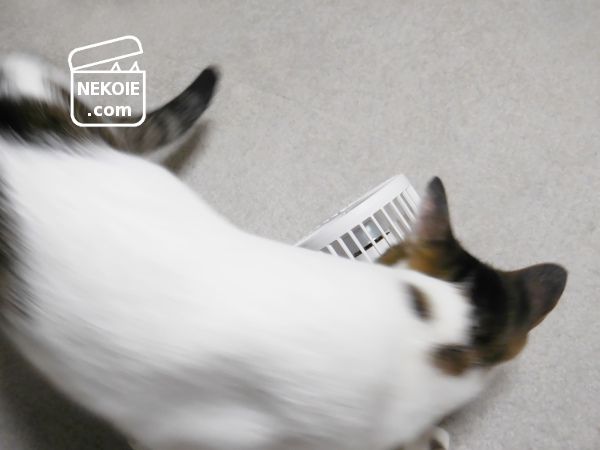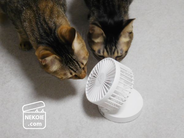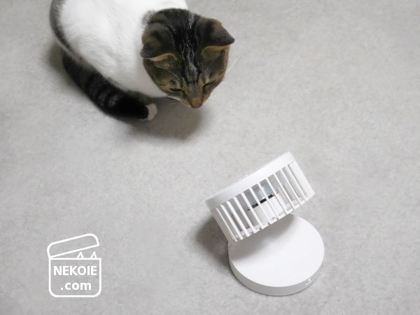 本日の猫は、はじめましての卓上ファン。