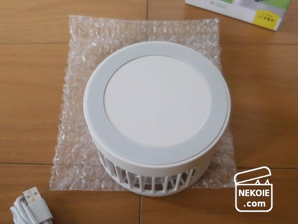 手のりサイズの本体が一つと、1mほどのUSBケーブルが一本。実は取説が入っていることに期待していましたが、簡単な説明が箱に書かれているのみでした。とはいえ使い方も難しくはなさそう。