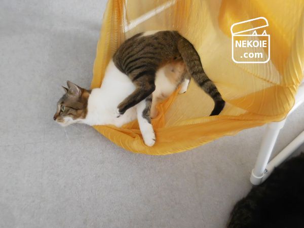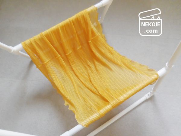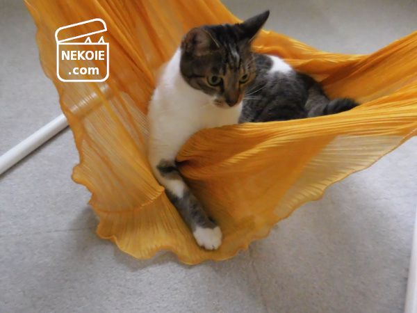 ハンモックと呼ぶには生地の張りが足りず、床についてしまいます。ただそのおかげで破けたり、そこから猫が落ちたりする心配がありません。