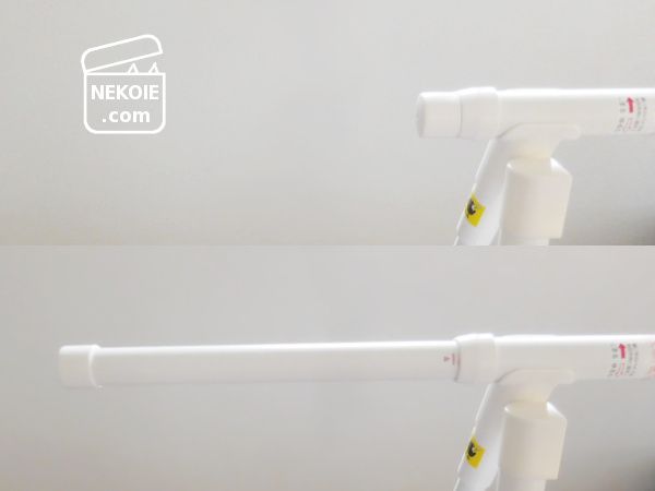 本体をはじめ、素材はほぼプラスチック(ネジなどには金属が使われています)。そのおかげで重量は1.3kgとの説明があり、本当に片手でもひょいと持てるくらいの軽量でした。