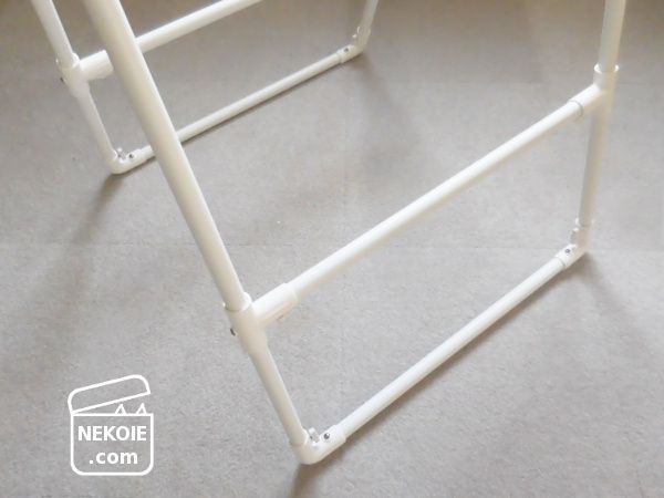 上部両端のパイプを伸縮させることができ、最長でおよそ110cm。耐荷重は7kgまで。シングルサイズの布団一枚なら問題なくかけられそうでした。