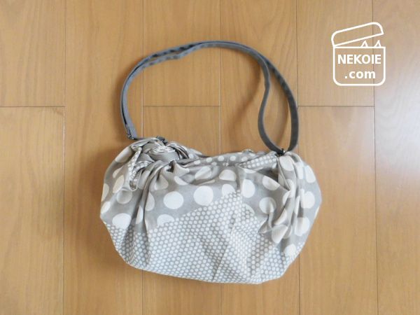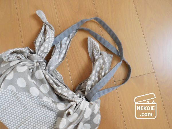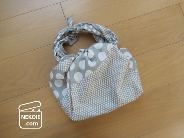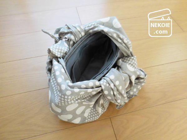 写真の状態は、風呂敷を巾着型にしてから、その巾着で既存のバッグを包んでいるだけ。