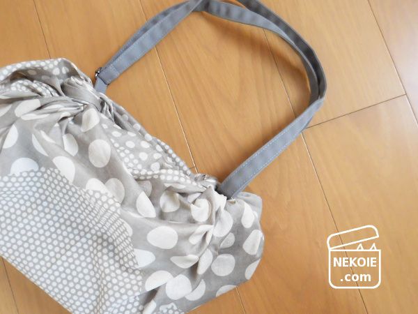 比較的軽いものを入れるときは、バッグのほうのストラップを外して(あるいは内側に隠して)「見た目は風呂敷バッグ」に。