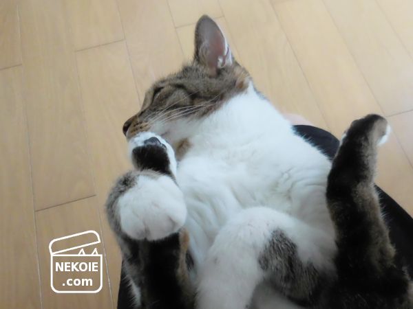 涼しいお盆のおかげで、弟猫はしきりにくっつきたがりました。