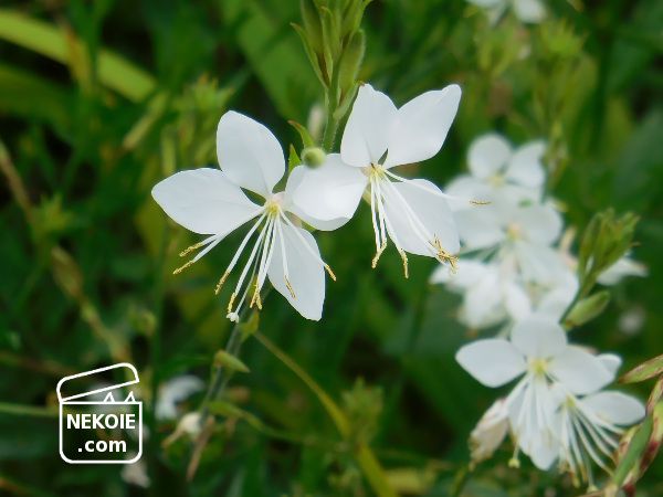 長い茎の先に白い花が複数つくので、花壇の奥や端っこに植えても映える植物。花自体の存在感はさほど強くありませんが、とてもかわいらしく、年々愛着が増しています。