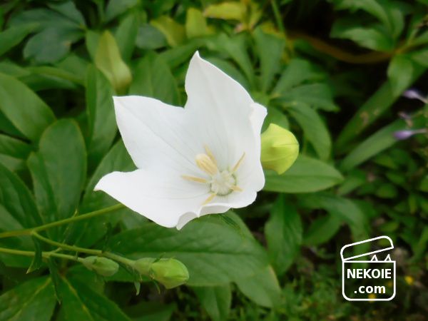 よく目にするキキョウは紫ですが、わが家では白を選びました。紫もすてきだけれど、白も清楚でかわいいです。