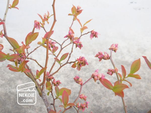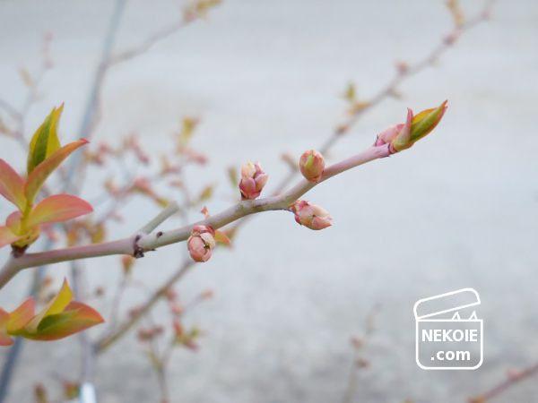 葉っぱのない姿(花より後から出始めることもある)には慣れてきましたが、ここ数年を振り返ってみても、近くのブルーベリーと比べると心配になる育ち方。
