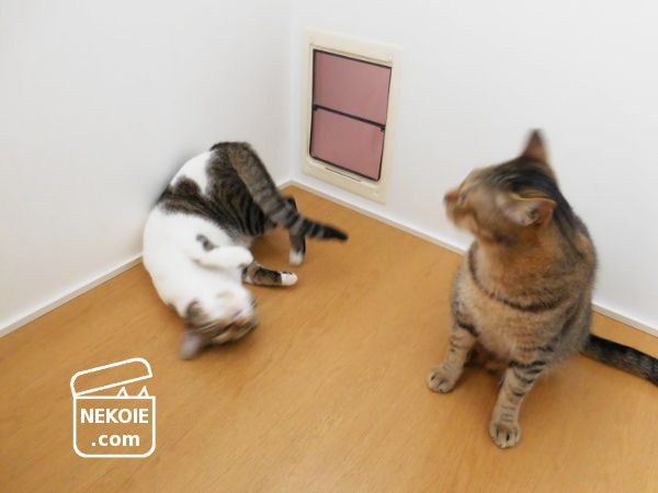 それもそのはず、兄猫が首を振る風圧(?)だけで吹っ飛される弟猫!