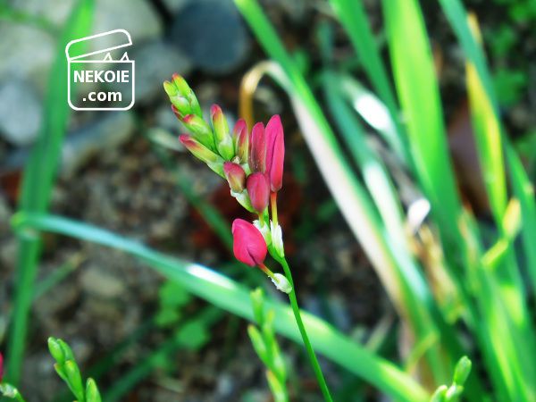 こちらもつぼみ、近々咲きそうなヤリズイセン。別名、イキシア。