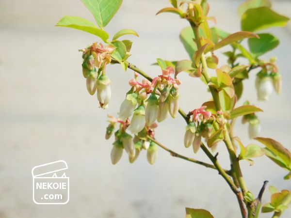 そして現在、花期真っ盛り。おいしい実のつくブルーベリーですが、花も本当にかわいいです。