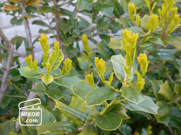 実は完全に終わってしまったけれど、新芽に力強さを感じるのがクリスマスホーリー。