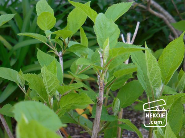 そして同じくばっさりと切られ、冬季は地面から10cmほどのでっぱりしか残っていなかったのがアジサイ、アナベル。