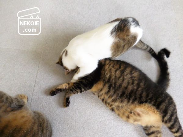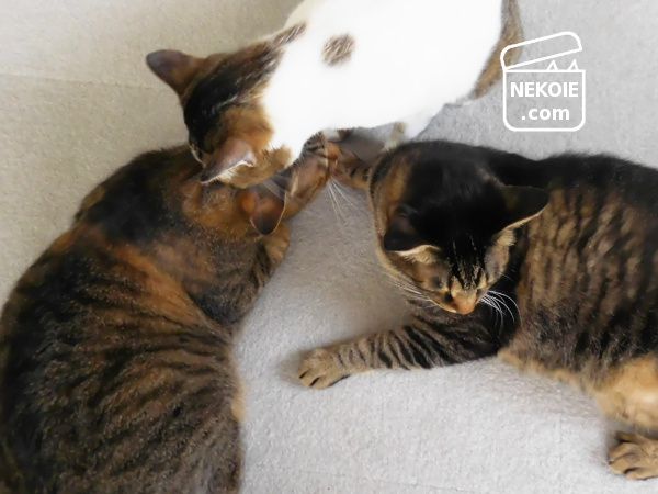 今日もお兄ちゃんを捕らえる……もとい、毛づくろいをしてあげる弟猫。