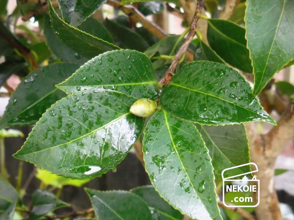 ミモザの花芽にも驚いてしまったけれど、こちらもこの時季でしたか、と思わされたのがツバキ。