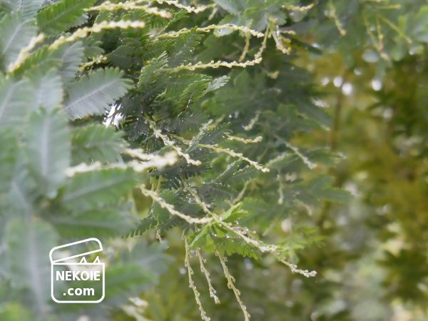 花芽が写っていませんが、同じ日に撮影している同じ樹の写真です。ミモザの夏の花芽にたびたび驚いてしまうのは、この種と同軸に存在しているのも大きな理由かもしれません。
