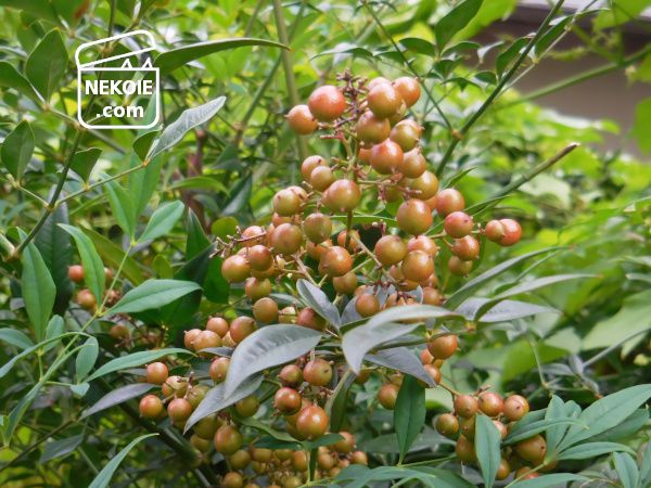 一方、実がついたのも最近なのですが、あっという間に赤くなり始めているのがナンテン。