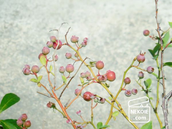 早々に花期を終え、現在は実の収穫期を迎えつつあるのがブルーベリー。