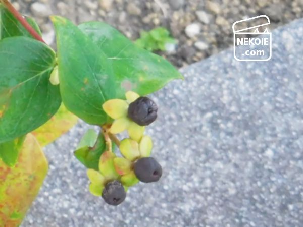 花期が終わり、赤々とした実がつき、それさえ終わってしまったのがヒペリカム。