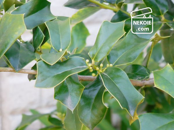 冒頭でふれたクリスマスローズは花期まっさかりですが、クリスマスホーリーはつぼみがつき始めたところ。